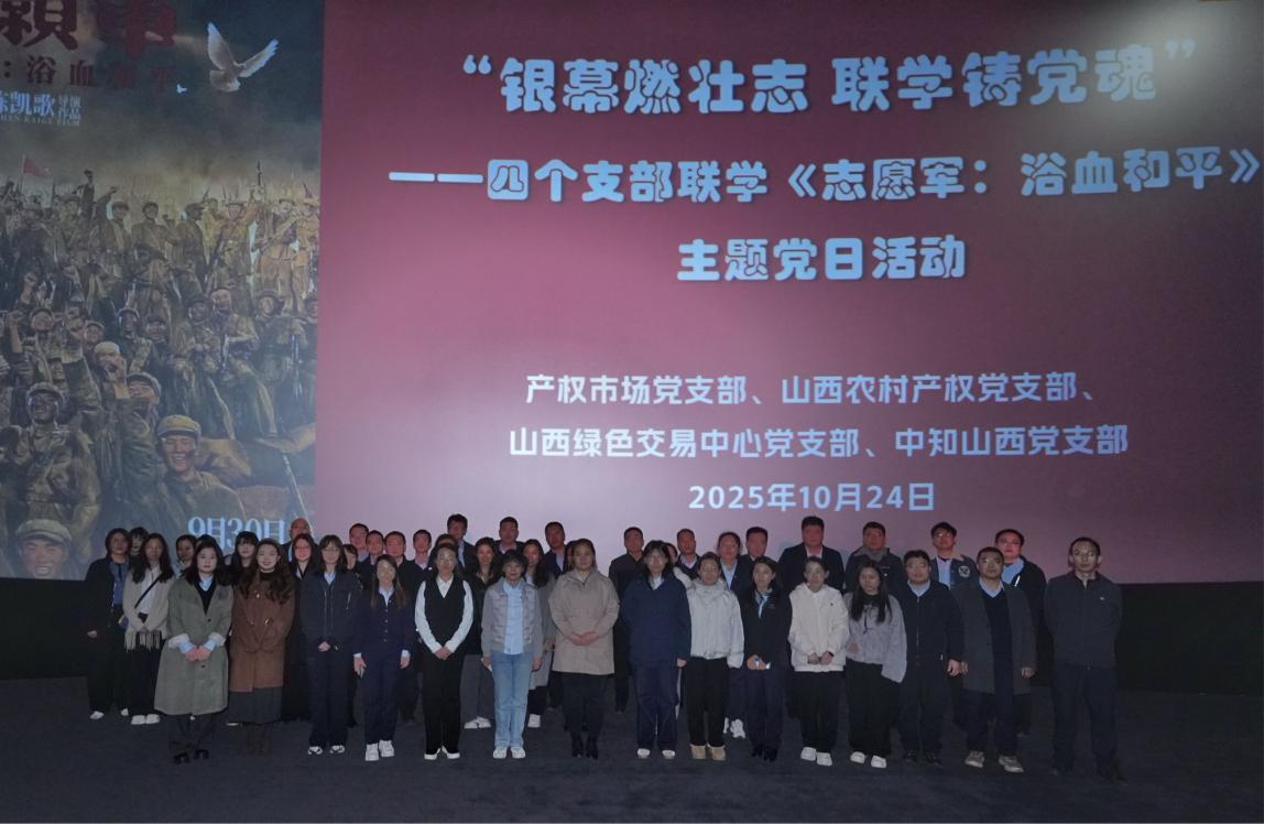 为深入推进爱国主义教育,传承伟大抗美援朝精神,强化全体员工理想信念与使命担当,10月24日,山西产权市场党支部联合绿色交易中心党支部、山西农村产权党支部、中知山西党支部,四个支部共同开展“银幕燃壮志 联学铸党魂”主题党日活动,组织全体员工集中观看爱国主义影片《志愿军:浴血和平》,重温峥嵘岁月,汲取奋进力量。