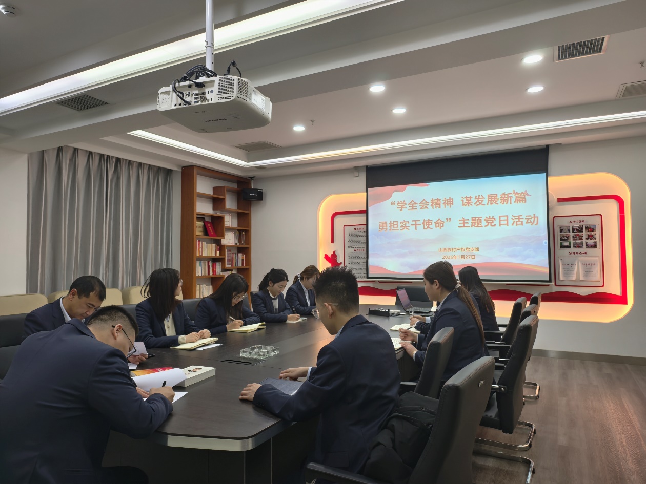为持续推动党的创新理论武装走深走实,切实把学习成果转化为高质量发展成效,2026年1月27日,山西农村产权党支部开展“学全会精神 谋发展新篇 勇担实干使命”主题党日活动。支部全体党员、积极分子、统战对象及群众参加,通过集中学习、交流研讨、警示教育等形式,筑牢思想根基,凝聚奋进力量。