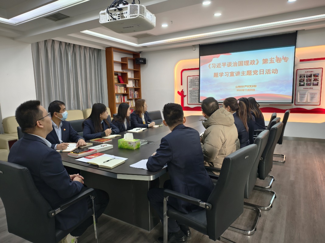 为深入学习贯彻《习近平谈治国理政》第五卷,深刻领会其重大政治意义、理论意义和实践意义,引导党员干部将思想和行动统一到习近平新时代中国特色社会主义思想上来,山西农村产权党支部于2025年11月28日上午举办11月主题党日活动,山西农村产权党支部全体党员、积极分子、统战对象及群众参加