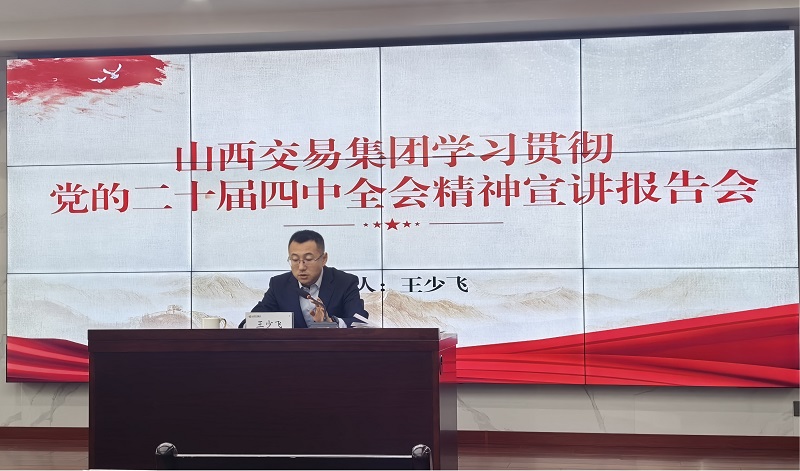 12月9日,山西交易集团召开宣讲报告会,党委副书记、副董事长、总经理王少飞围绕学习贯彻党的二十届四中全会精神,就公司如何在服务全国统一大市场建设中彰显新担当、实现新作为作专题宣讲,为公司锚定“十五五”发展目标、统筹推进各项工作任务明确方向、凝聚共识。公司领导班子成员、全体党员参加会议